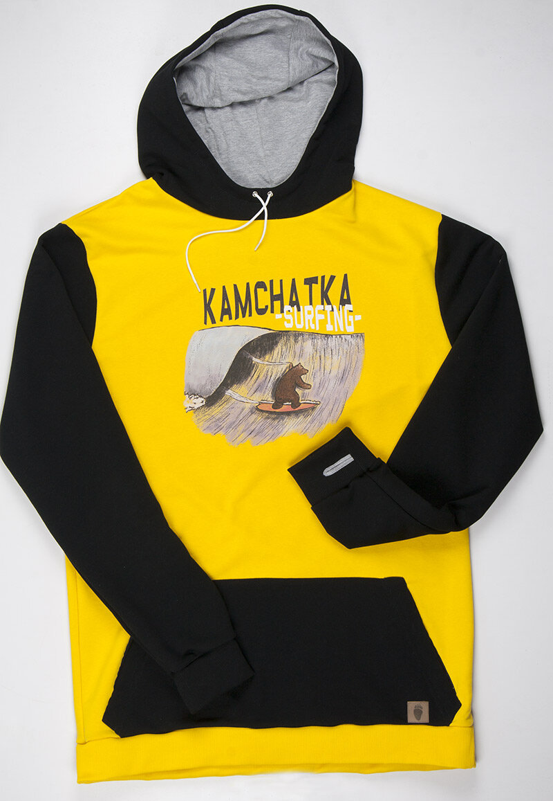 Чаще надевается через голову. Застежка-молния и накладные карманы тоже могут присутствовать, но обязательными не являются. Свитшот