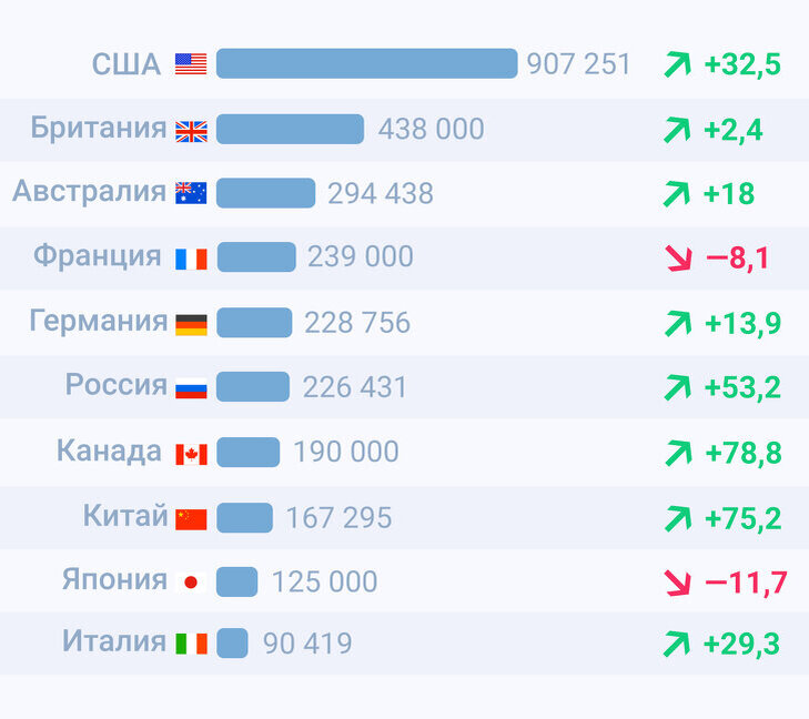 Топ-10 стран по количеству иностранных студентов