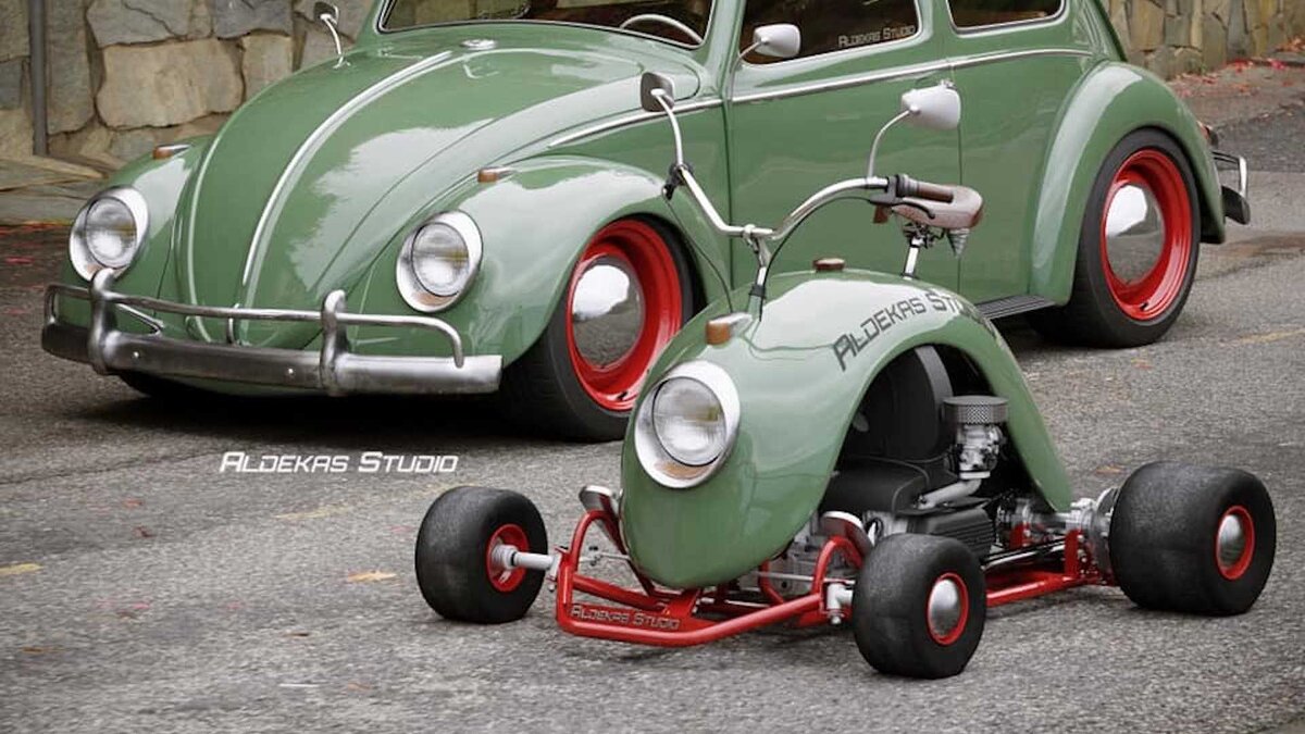 Экстравагантный дизайн-проект чего-то среднего между картом и мотоциклом представило у себя в соцсетях тюнинг-бюро из Мексики Aldekas Studio. «Винтажный» спорткар уже обзавёлся собственным названием — Bugkart Wasowski. Однако пока проект далёк от серийного воплощения.