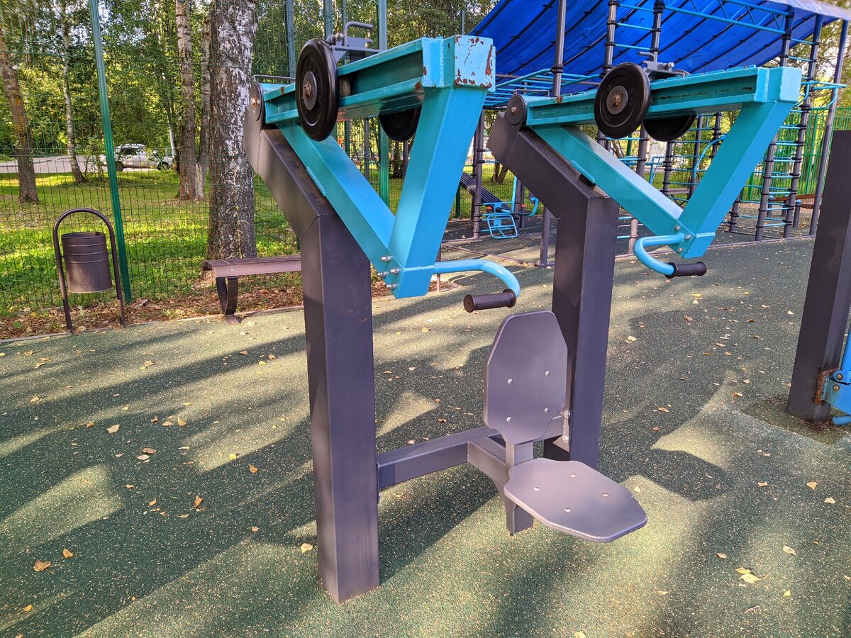 Смотрите какой интересный уличный тренажёр мне попался. Именно такого типа мне попался впервые. Подобие таких конечно же видел.