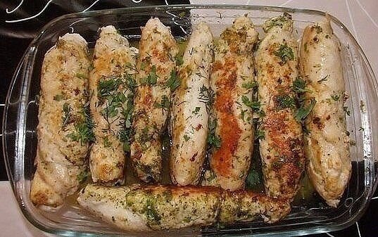 🔸на 100грамм - 135.28 ккал🔸Б/Ж/У - 17/3.02/9.48🔸 Ингредиенты: Куриное филе- 8 шт грудки(1,5кг) Сыр твердый- можно Альтермани 200гр Чеснок - 4-5 зубчиков Зелень- (петрушка,укроп,кинза)150гр Сметана - 50гр Оливковое масло 100 гр Соль, перец черный молотый Приготовление: 1. Куриное филе отбить с двух сторон немного посолить и поперчить. 2. На краешек филе выложить фарш(мелко рубленная зелень,мелко рубленный чеснок, ,немного подсолить,натереть на терке 100гр сыра)все перемешать. 3. Затем филе нужно завернуть рулетиком и обжарить несколько минут на оливковом масле со всех сторон до румяной корочки,на медленном огне. 4. После этого обмазать филе сметаной,посыпать сыром 100гр и поставить в духовку на 10-15 минут при температуре 120-150 градусов(пока сыр не подрумянится). 5. Готовый рулет можно подавать к столу с картошкой фри,картофельным пюре,спагетти. 6. Для красоты можно добавить помидорки чери или ломтики нарезанного болгарского перца приправленный соевым соусом... П