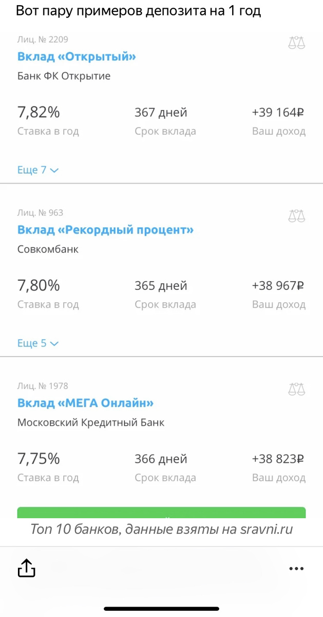 Всем привет! Год назад написал первую и единственную статью на Дзене. Сейчас решил вернуться. 2020 год в целом выдался достаточно событийным и насыщенным , одна пандемия чего стоит. в сентябре 2019 я делал статью по вариантам размещения денежных средств на вкладах и инвестиционных инструментах. Пришло время показать что изменилось за год и какие финансовые результаты принесли бы те или иные вложения. Начнём с депозитов и сравним, как изменились ставки за год ниже вклады на сентябрь 2019 и август 2020 Как вы можете видеть - ставки упали на 3%, что очень сильно ударило по доходности и актуальность депозитов. Теперь давайте посмотрим несколько видов инвестиции , которые можно было сделать в сентябре 2019 года и какие финансовые результаты были бы сейчас Здесь облигации двух крупных частных УК, у них чуть отличаются стратегии, Альфа более нацелен на повышенный процент, Райф более консервативный. Как мы видим, разница в доходе есть, от 2 до 4% доходность по облигациям выше. Однако, нужно