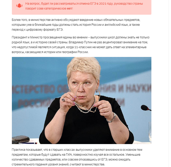 Приветствую Вас после летнего отпуска! Выхожу из отпуска и узнаю, что ОГЭ и ЕГЭ "думают" отменить. Моя подруга - учитель в школе сообщила, что все ждут результата рассмотрения закона. Начинаю смотреть в интернете. Сначала выходит эта заезженная информация, что будут отменять, отменять - трубят, трубят. Потом попадается, что могут и не отменить. И данный сайт в заключении призывает готовиться к экзамену. С коммерческой точки зрения такой взгляд обоснован. Что же делают сторонники отмены? Публикуют кричащие утвердительные заголовки. Рассказывают об эмоциональных взглядах президента. От "Идея понравилась" до "Изменить что-то и принять закон" может пролегать пропасть огромных размеров. Но все таки, станет ли ОГЭ и ЕГЭ добровольным выбором? Так как результаты данного экзамена не будут влиять на получение аттестата, то данное течение назвали: "Отделить ЕГЭ от школы" Сами же сторонники "отмены" говорят, что на гос.уровне их слушать не хотят. Говорят и пишут статьи весьма в эмоциональны