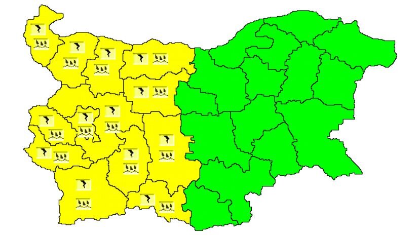 На сегодня, 25 августа, из-за интенсивных дождей и сильного ветра в 13 областях Болгарии объявлен „желтый“ уровень метеорологической опасности, показывают данные Национального института по метеорологии и гидрологии... Из-за интенсивных дождей и сильного ветра в 13 областях Болгарии объявлен „желтый“ уровень опасности
