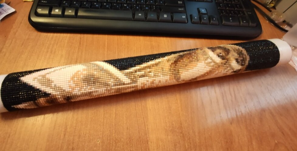 И еще рекомендация, перед сворачиванием холста, пройтись по нему скалкой или бутылкой (но не слишком сильно давить). Это делается для того, чтобы алмазики все встали на свои места.