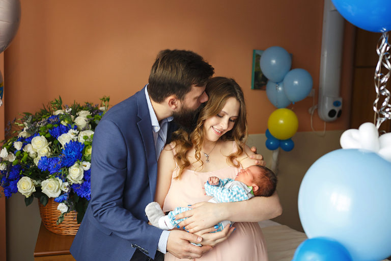 Большой и роскошный букет красивых цветов – обязательная часть программы. Не можем советовать, какие именно цветы вам дарить: многие женщины любят розы, но есть и такие, которые предпочитают полевые ромашки или экзотичные гиацинты. Не забывайте, что букет не должен иметь сильного аромата, так как у ребенка может быть аллергия. Хорошая альтернатива живым цветам являются креативные букеты из сладостей или фруктов. В дополнение к цветам или сладостям можно купить охапку гелиевых шаров. Разноцветные шары всегда вызывают радость и приятные эмоции.