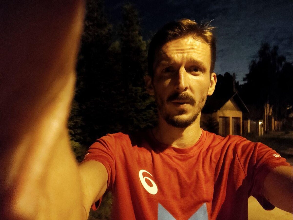 Бежал в 10 вечера после работы у себя по району. Было радостное предвкушение, что вот сейчас после работы ещё и полумарафон махану, ах какой я молодец! План на гонку от Дежурного тренера состоял в том, чтобы первую половину бежать с определённой скоростью, а на второй половине поднажать. Ну, я бежал, а потом поднажал.