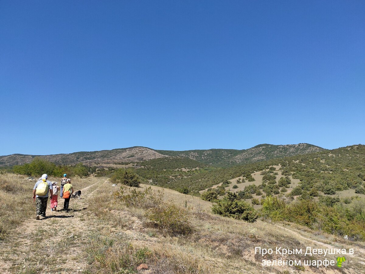 Заманчиво? Конечно да! Осторожно! Впереди будет много фотографий... Добрый день, дорогие читатели! Мы всей семьёй вчера решили отправиться в путешествие:) И не просто в путешествие, а покорять горы и пещеры... В число знаменитых природных достопримечательностей Крыма входит и гора Агармыш (на русский язык название переводится как «седой»), которая возвышается почти на 730 метров над уровнем моря. Агармыш является крайним восточным участком Крымских гор. Общая длина этого горного хребта, расположенного отдельно от остальных яйл, составляет 8 км. На Агармыш и отправились. Стартовали мы пешком от кладбища где находится могила Грина. Путь наш лежал к пещере Лисий хвост, через Бездонный колодец. Мы поехали семьёй из: Начало пути легло через помойку. Горы мусора, кучи битого стекла, море костей. Но и она оказалась калоритной... Мы ещё не поднялись в горы, а вид открывался уже шикарный. Вдоль дороги нашли Бессмертник песчаный. Сначала подъем был достаточно пологий и собаки рванули вперёд.