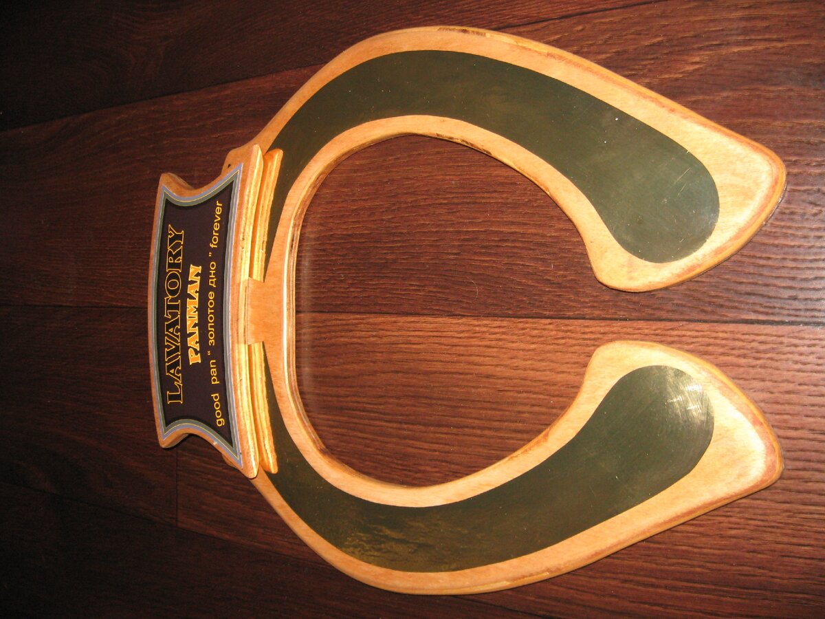 Я постарался использовать тональные цвета. Размер - как уж Дзен обрежет. Масштаб. Можно использовать в натуральную величину (размер сиденья унитаза) или лучше (как в моём случае) - уменьшенная версия: один к трём. Шаблон уже не найду, да и фото архивные. Так что творим или на глаз, или по эскизу, и это не критично. Золотое покрытие - наклейка плёнкой.