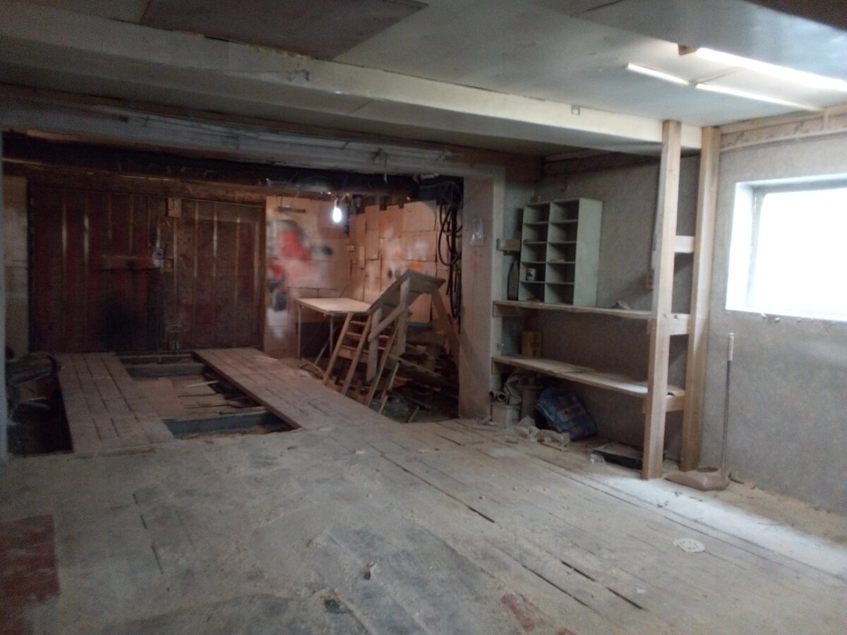 У нас это всего лишь смотровая яма, что не так уж и плохо для шампиньонов. Стены тут из толстых лиственных досок, поэтому остается только их погуще побелить известью, залить бетоном пол и обустроить потолок. Это необходимо, чтобы не было грязи, плесени и шампиньоны не болели. Да и вода никуда кроме как на грибницу не уйдет.