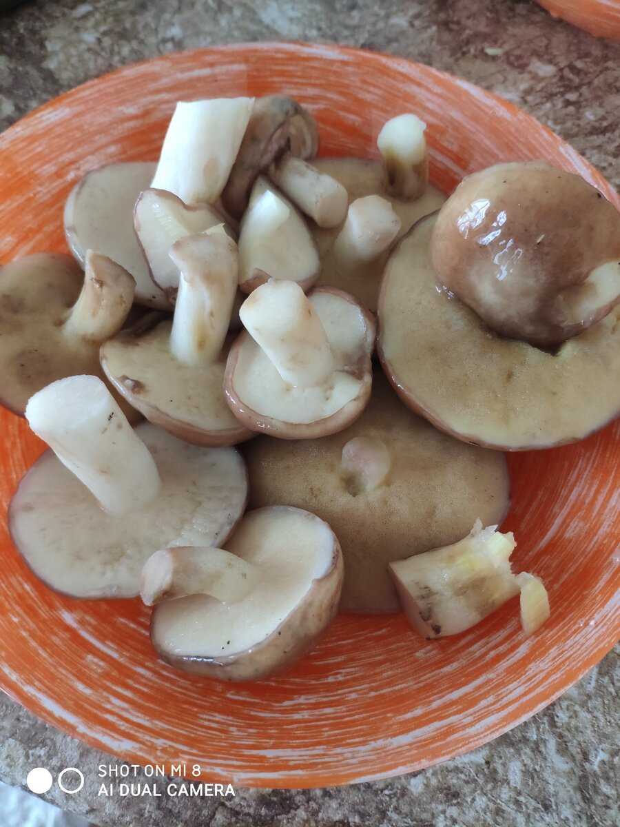 Маслята промываем от лесного мусора, от земли и сухой травы, моем и чистим.
