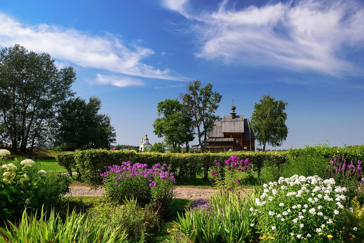 Чудесный Суздаль летом похож на цветник – у каждого дома роскошные куртины садовых однолетников и цветущих кустов. «Откуда гортензия на северах?»- спрашиваем у гида, у нас-то на юге Подмосковья такую замучаешься выращивать, а здесь, в зоне рискованного земледелия, гляди-ка…