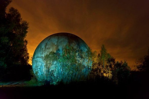 С высоты птичьего полета, шар можно принять за НЛО. Однако, в действительности,это диэлектрический колпак для параболической антенны космической связи. Перевозили колпак вертолётами, но во время транспортировки лопнул трос. Вывозить купол оказалось проблематичным мероприятием и приняли решение оставить его там.