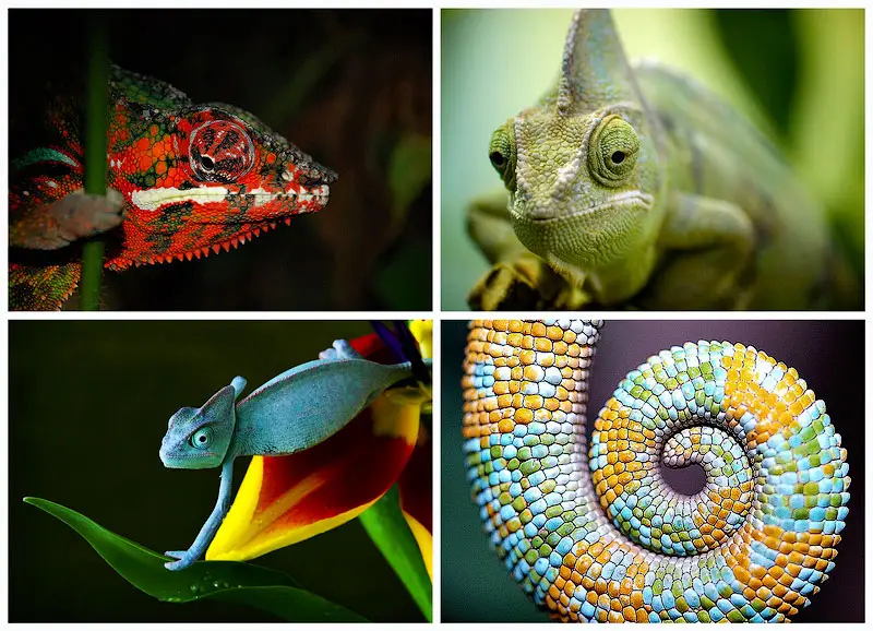 Любое животное, которое может менять цвет и смотреть одновременно в двух направлениях, стоит того, чтобы узнать о нем побольше. Вооруженный своим длинным языком, хамелеон, возможно, является одной из самых интересных рептилий на нашей планете. Предлагаем вам несколько интересных фактов о хамелеонах. 1. Почти половина всех видов хамелеонов живет на Мадагаскаре, и 59 видов не встречается больше нигде в мире. Всего в мире около 160 видов хамелеонов. Они обитают от Африки до южной Европы, по всей Южной Азии до Шри-Ланки. Они также были ввезены в США – на Гавайи, в Калифорнию и Флориду. 2. Большинство хамелеонов меняют цвет от коричневого до зеленого и черного, но некоторые могут становиться практически любого цвета. Изменение может произойти менее чем за 20 секунд. Хамелеоны рождаются со специальными клетками с цветовым пигментом внутри. Эти клетки лежит слоями под внешней кожей хамелеона. Они называются хроматофоры. Верхний слой хроматофор имеет красный или желтый пигмент, нижний – г