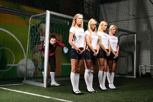 Представьте себе "стеночку" из красоток. Что первым делом прикрывает футболист? Правильно, именно то, о чём вы подумали. А женщина?