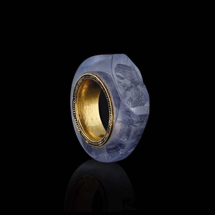 Кольцо Гая Юлия Цезаря с сапфиром была продано за 39 000 000 рублей. Вопрос: почему так дорого? 1. Возраст кольца - около 2000 лет. 2. 90% того, что сапфировое кольцо носил сам Юлий Цезарь. 3. В самом сердце кольца располагается портрет. 4. Украшение выполнено из цельного сапфира. Еще есть вопросы? Однозначно, лайк!