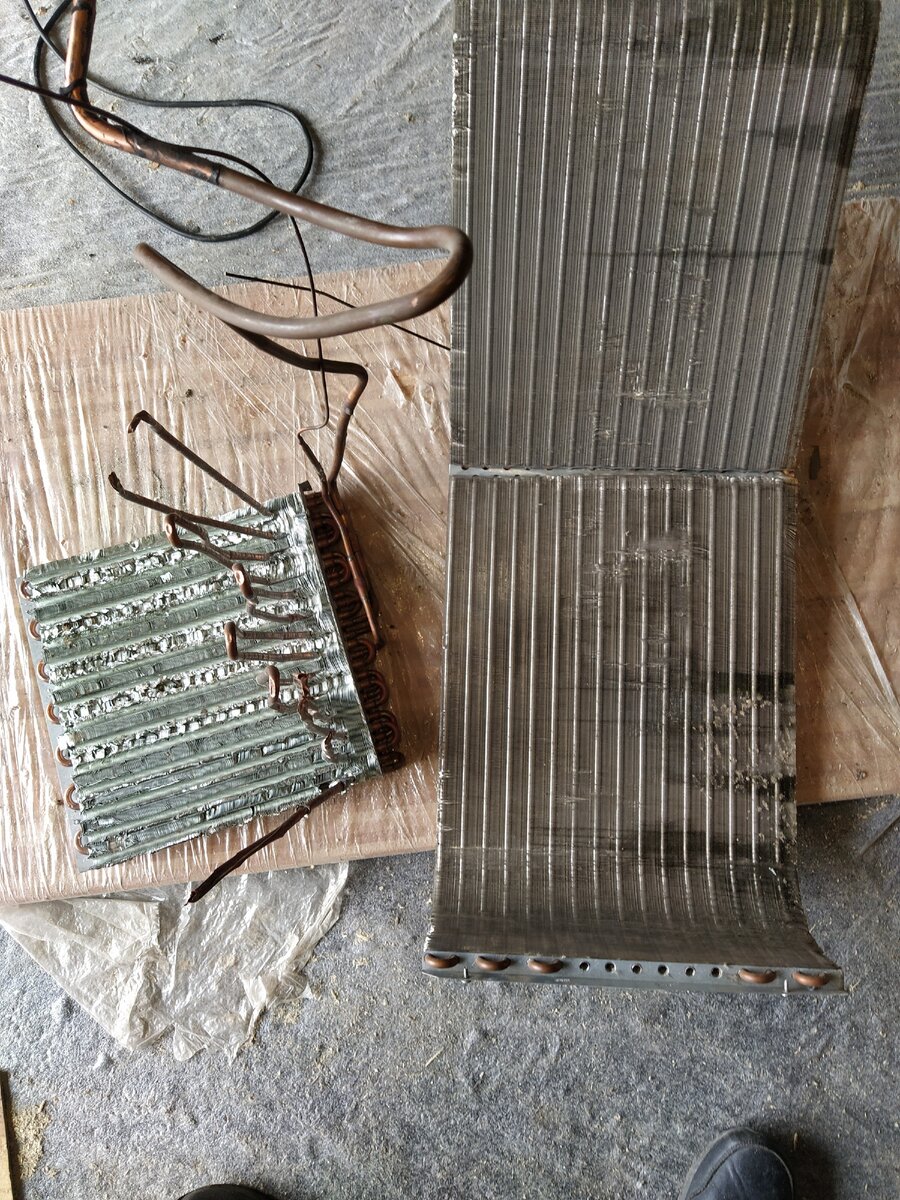 Думая что раз кондиционер разобран. Я надеялся что он пошел в разбор по причине утечки фреона. И в момент отделения компрессора от радиаторов. Произошло следующее. Никто не пострадал.