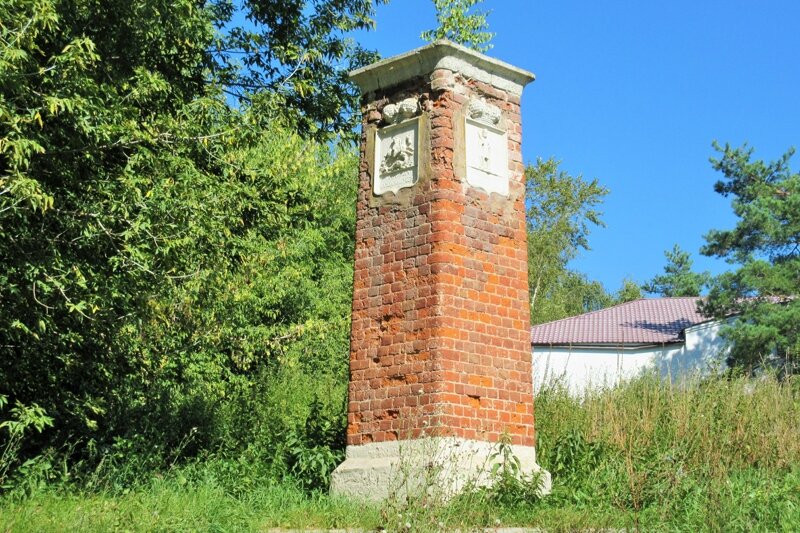 Если приглядитесь внимательнее, то заметите слева внизу массивный гранитный столб с изображением Георгия Победоносца и пешего воина.