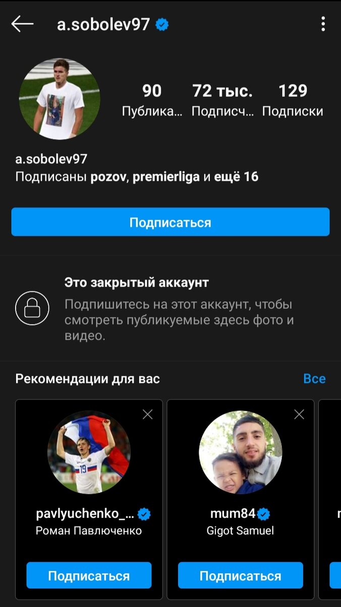 10: Александр Соболев (a.sobolev97) 72 тыс. 9: Александр Максименко (Aleksander Maksimenko) 72,1 т... 8: Лукас Айртон (ayrton97_) 74,5 т... 7: Алекс Крал (alexkral.cz) 74,9 т... 6: Селихов (selikhov57) 78,2 т... 5: Ребров (rebrov32) 124 т... 4: Джикия (georgiy_14) 138 т... 3: Зобнин (zobnin47) 205 т... 2: Кокорин (kokorink9) 486 т... 1: Педро Роша (pedrorocha32) 838 т... Всем спасибо за прочтение. Подписывайтесь на меня это не последний крутой топ. Кстате у меня тоже есть инста 1922_fan подписывайтесь и на него. ВСЕМ ФУТБОЛА И ПОБЕД:)