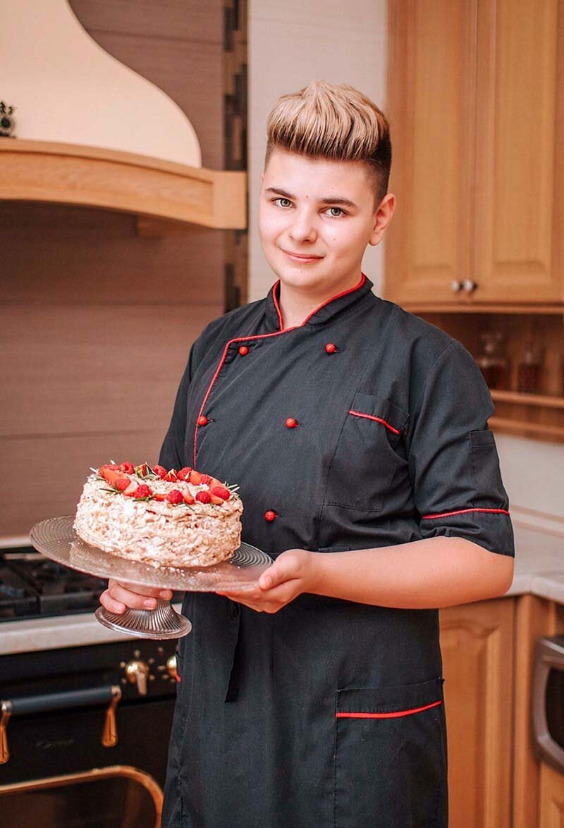 Владислав Молдованов, похоже, уже определился с будущей профессией и местом в жизни. Парню всего 15 лет, а он уже готовит топовые десерты мировой кулинарии. У юного самоучки есть собственная книга рецептов и мечта открыть кондитерский цех. «Наполеон» и многое другое Интерес к готовке школьник начал проявлять лет с семи. Пока на домашней кухне никого не было, пытался воплотить в жизнь найденные в интернете или в поваренной книге бабушки рецепты. Это сейчас Влад может приготовить торт буквально с закрытыми глазами, а тогда, набивая руку, перевел немало продуктов. Примерно четыре года назад юный кондитер занялся сладким делом вплотную. Теперь он готовит торты на заказ: для молодоженов, именинников и других виновников различных торжеств. В неделю в среднем бывает по 15 заказов. Благо, что основной наплыв клиентов — летом, во время каникул, а вот зимой приходится делать торты после школы или по выходным. — Мой коронный десерт — торт «Наполеон», — улыбается молодой человек. — Отменно полу