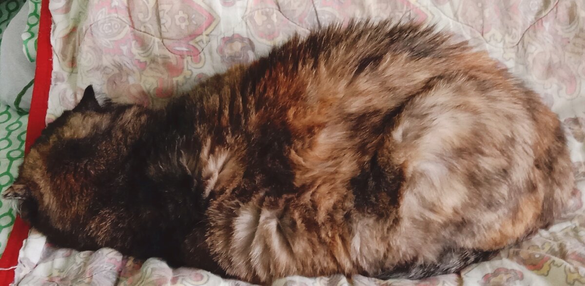 Наша красотка уже лежит на моем месте уютно так свернувшись комочком.