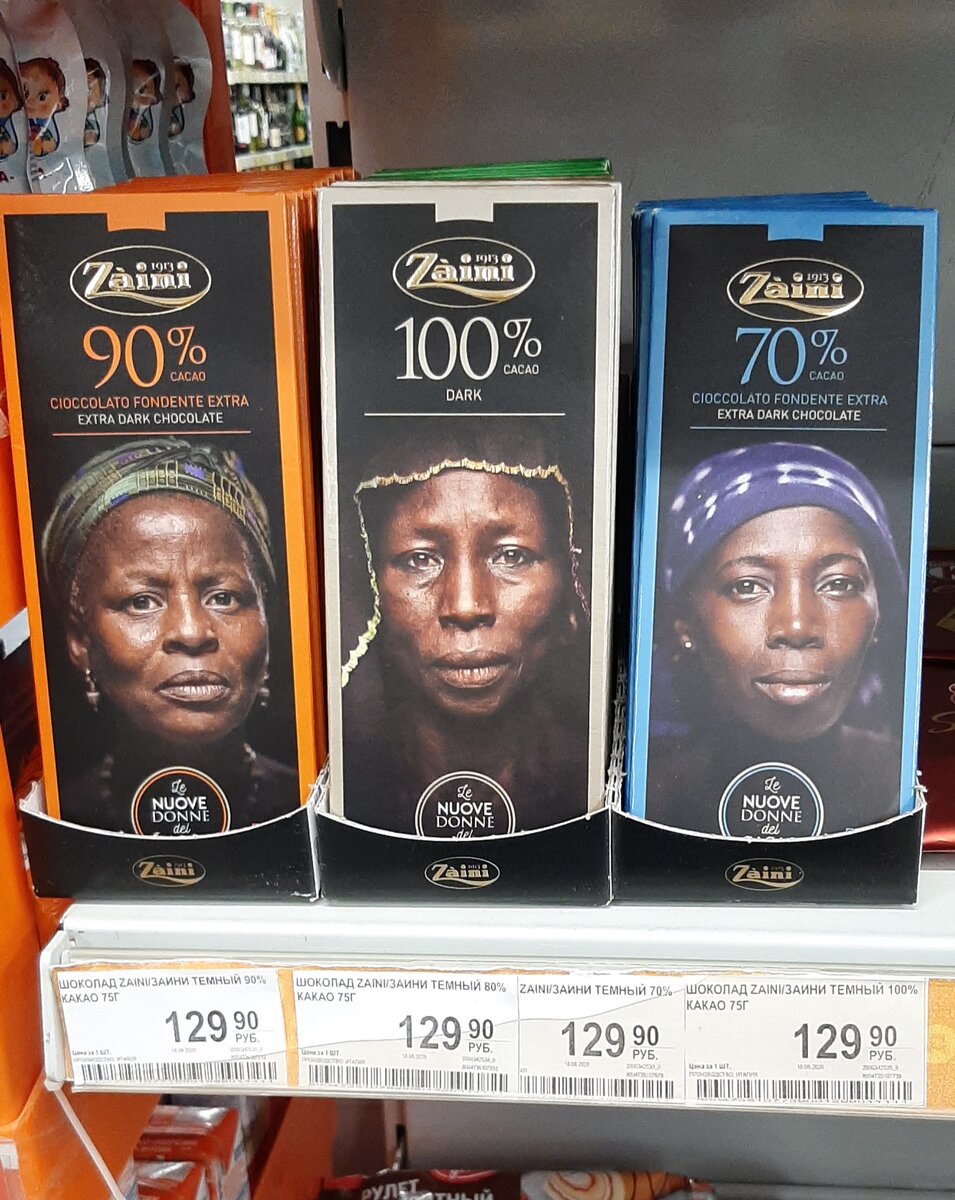 В Дикси с прилавка на меня посмотрели три этнических лица, негроидной расы😊. Сразу обратишь внимание на такое с непривычки. Хороший маркетинговый ход.