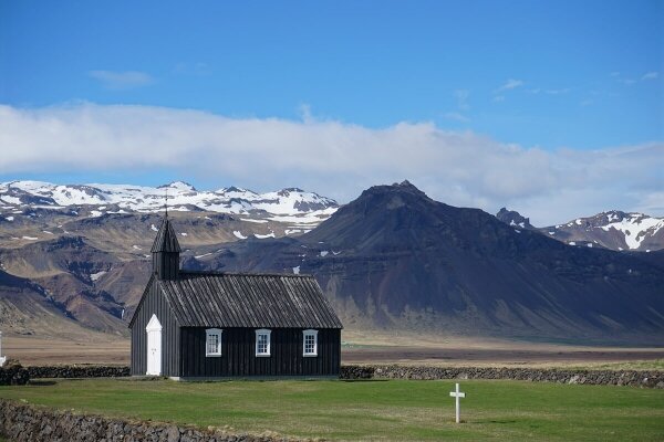 День 7 маршрута по Исландии. Гора Kirkjufell, Snæfellsjökull National Park, дикий термальный источник, черная церковь Búðakirkja, Рейкьявик.