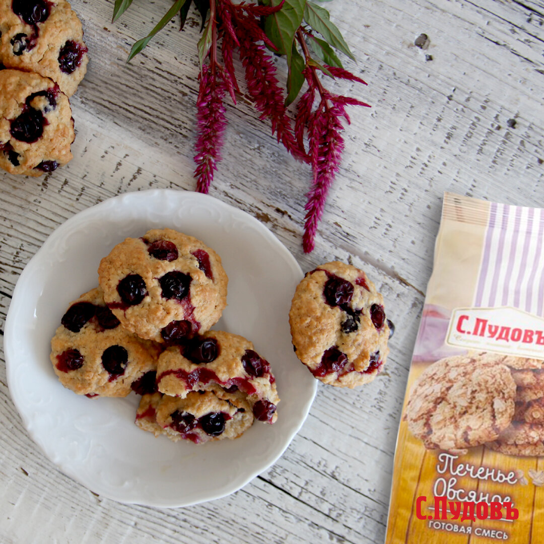Простое и вкусное сочетание: тесто с овсяными хлопьями, ягоды черной смородины и немножко корицы. Новая идея с мучной смесью С.Пудовъ. Такие рецепты всегда востребованы, так как печеньки получаются полезными (что ценят взрослые, особенно мамы), но при этом остаются вкусными и сладенькими (как любят дети).