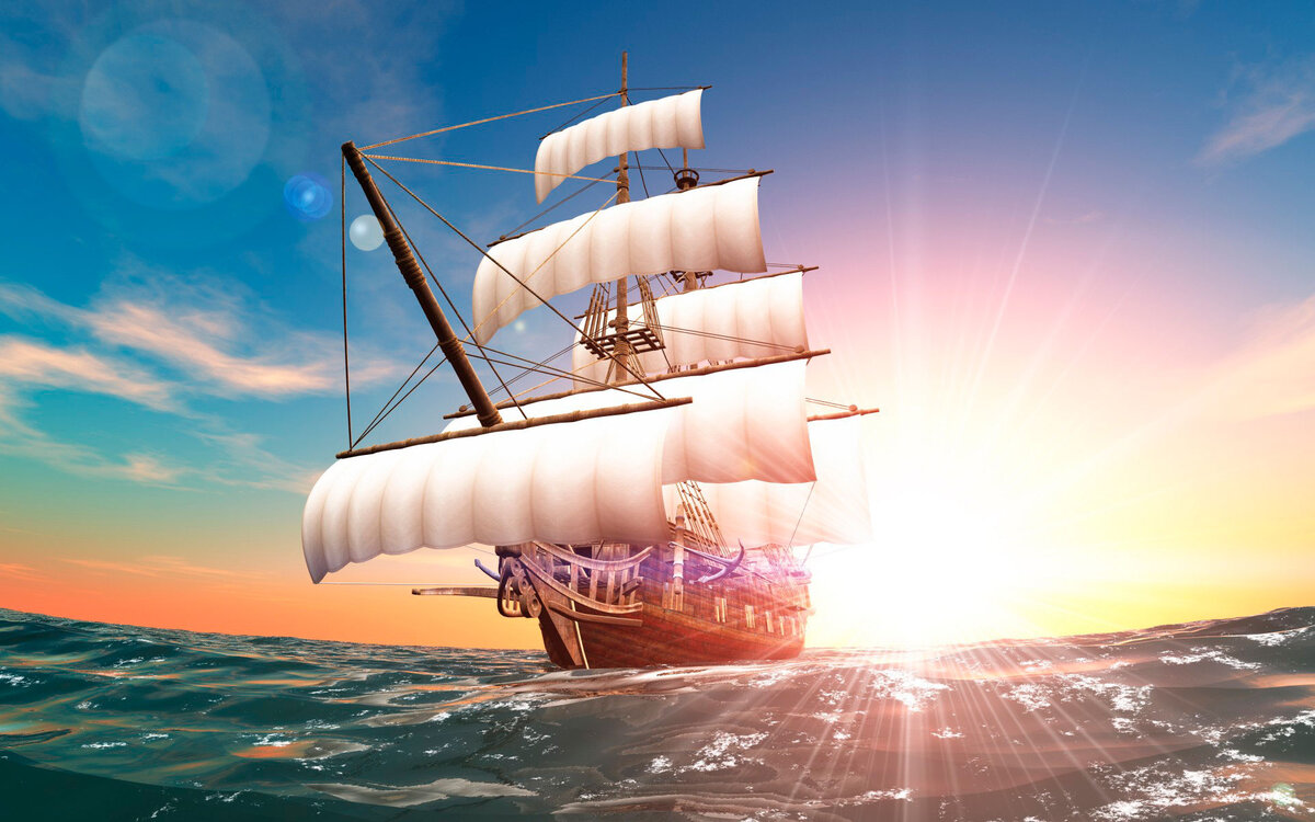 В один прекрасный день Сильвер под гром пушек ступил на борт корабля. Отдали концы, и корабль вышел из бухты в открытое море. Провожающие уже стали расходиться. Кто-то принес подзорную трубу. Стали рассматривать корабль, и смотревший в трубку воскликнул: