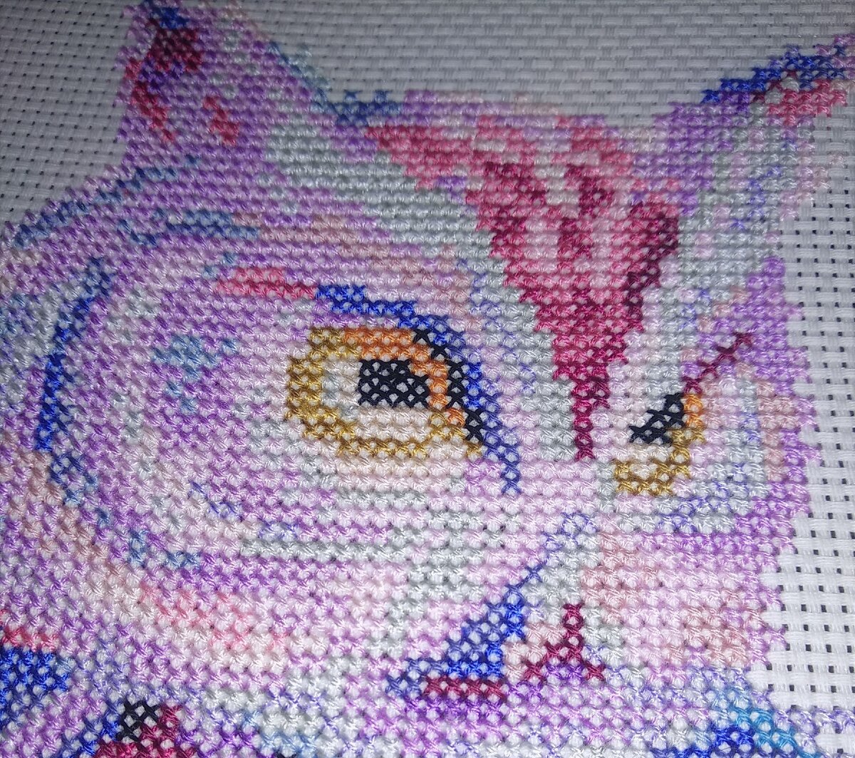 Если бы я знала это раньше я бы, честно, не покупала бы этот набор на Али. Но что сделано, то сделано. Набор куплен и уже почти вышит, остался только частично бэкстич. На самом ловце снов я его уже вышила, а вот на сове только предстоит. Я, как и многие вышивальщицы, не очень люблю его вышивать, но с ним, что уж таить, получается лучше. Так же мне нужно пришить бусинки, но это я буду делать после того как постираю и отглажу работу. Вот так сейчас выглядит мой процесс: Еще хотела бы сказать пару слов о самом наборе. Канву я меняла, в набор была вложена не очень хорошая, да и отрезочек был маловат. Маловат настолько, что свободных краев почти не оставалось. Поменяла на то что было, а была Аида 11 каунта, в наборе был 14 каунт, соответственно моя работа получилась больше. Нитки в наборе были DMC, но некоторых цветов мне не хватило, хоть я и вышивала очень экономно. Причем не хватило буквально по одной ниточке, а вот черный цвет закончился еще на этапе бэка на перышках. Хорошо что черны