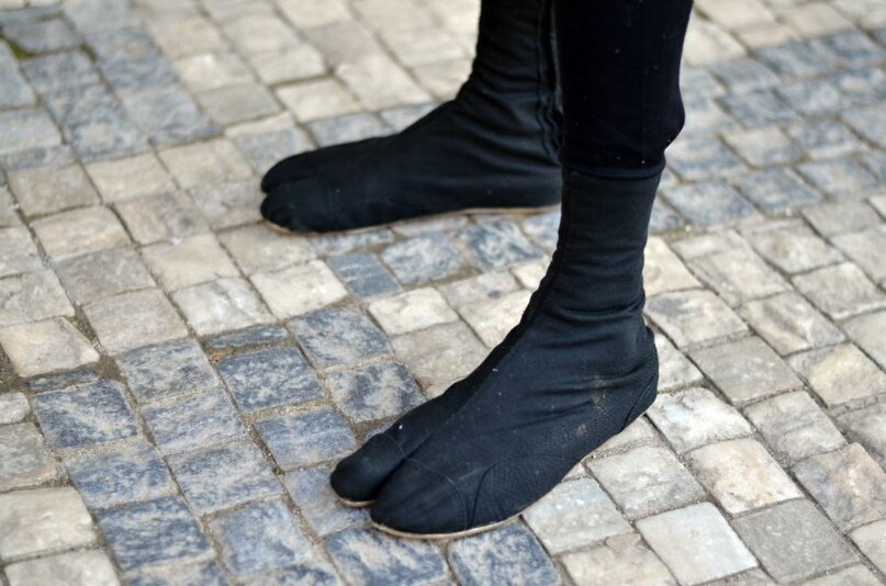 Японская обувь таби – одна из давно придуманных принципов удобной и бесшумной обуви , которая использовалась как ниндзя так и самураями для бесшумной и манёвренной ходьбе и перемещению по различной пересечённой местности за счёт мягкой подошвы и раздельного большого пальца.