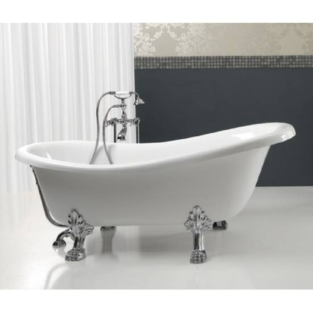 - Отдельно стоящая овальная ванная на ножках – довольно громоздкий вариант, требующий большого пространства и сулящий массу хлопот в вопросах уборки. Смело меняем ее на привычный прямоугольный вариант, просто обшиваем плиткой. Использование душевой кабины также допустимо.