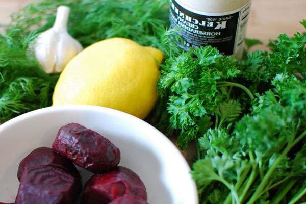 - Отвариваем 500-600 г нечищеной свеклы и даем остыть прямо в той же воде. Затем чистим ее и прокручиваем через мясорубку или измельчаем в блендере.