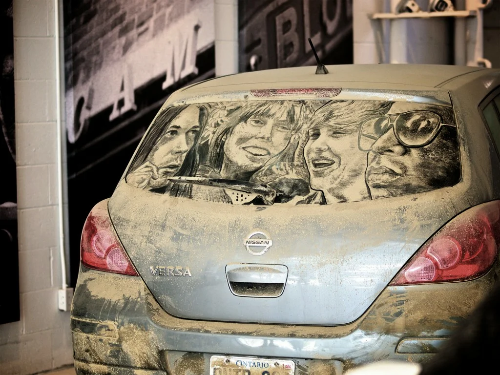 Помнится, провести пальцем на пыльном борту автомобиля в детстве, вообще считалось, чем-то обыденным, выводя заветные буквы Й, У и Х, рисуя рожицу или надпись "помой меня!". Взрослым особям-художникам также не чужды пыльные и грязные автомобильный борты. Только они там уже, конечно, не настолько примитивно самовыражаются, а можно даже сказать искусно и очень даже художественно... Жаль только, что такое искусство - уж очень недолговечно. Достаточно часто на улице можно увидеть запылённые или откровенно грязные автомобили, на которых шутники вывели надпись «Помой меня!» Но познакомившись с творчеством художника Скотт Уэйд из Техаса, хочется призвать всех автовладельцев: «Не мойте свои грязные машины! Позаимствуйте немного вдохновения у Уэйда и творите!» Для художника из Техаса Скотт Уэйд источником вдохновения являются грязные автомобили. Много лет назад его увлекало рисование пальцем на запылённых задних стёклах машин героев мультфильмов. Получалось достаточно забавно. Шли годы. Гр