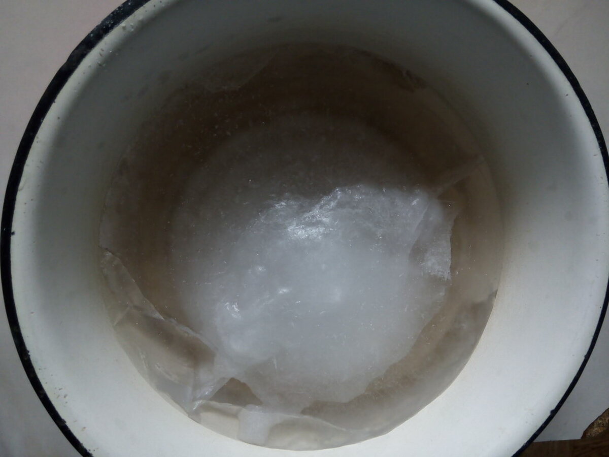 Делаем живую воду очень просто. Замораживаем на ночь воду в ёмкости, только не в стеклянной, так как стекло лопается.