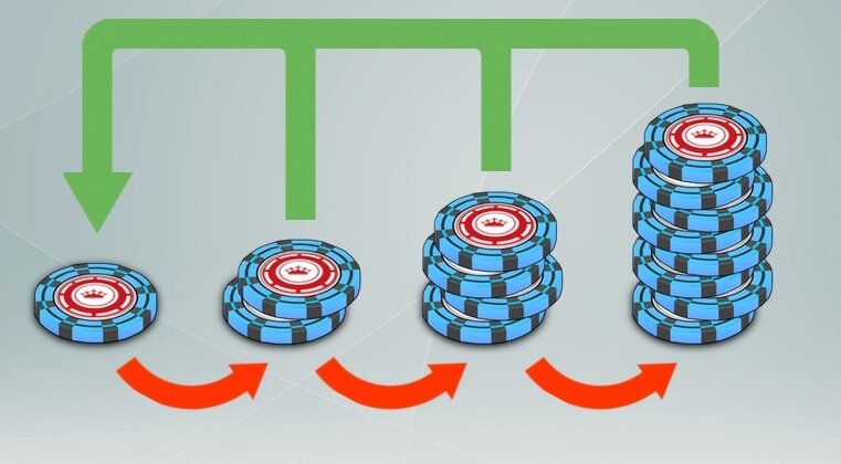 Стратегия Мартингейл считается самой известной и нашумевшей стратегией. Изначально, как и многие другие стратегии для ставок на спорт, Мартингейл была разработана для игры в казино. По своему характеру или направлению данную стратегию следует относить к разряду прогрессивных стратегий, где после каждого проигрыша новая сумма ставки будет увеличиваться. При этом Мартингейл даже в случае частых проигрышей позволяет игроку оставаться «в плюсах» (иметь определенную прибыль). Но существует и другая сторона медали, а именно высокий риск самой стратегии, что при легкомысленном и необдуманном использовании может очень быстро привести Вас к финансовому краху (банкротству). Суть стратегии Мартингейл довольно проста: после каждого проигрыша Вы удваиваете сумму предыдущей ставки, и возвращаетесь на определенное начальное значение после очередного выигрыша. На конкретных цифрах это будет выглядеть следующим образом: скажем Вы решаете начать делать ставки со 100 у.е., значит в случае проигрыша, с
