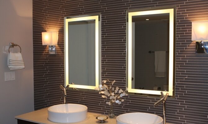 Наравне с качественной сантехникой зеркало с подсветкой в ванную комнату является важным элементом оснащения и дизайна этого помещения. Подсветка зеркала играет не только практическую, но и декоративную роль, привнося в интерьер ванной комнаты особую нотку, добавляя интимность и комфорт всему помещению. Вот почему зеркало и подсветку для него надо выбирать с особой тщательностью.