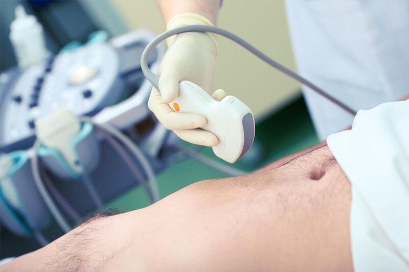 Само обследование проходит достаточно просто. Человека укладывают на кушетку на спину. Иногда диагност может попросить пациента повернуться на один или на другой