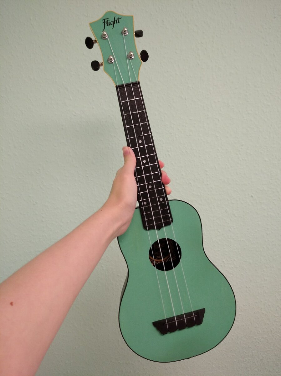Научиться играть хотелось уже давно, примерно полгода до покупки я настраивалась на такую трату денег. Я вообще то бедный студент, и даже укулеле просто так купить не получится. Так вот, июнь 2020 года, карантин во всей стране. Музыкальные магазины конечно закрыты, а желание учиться чему-то новому меня не покидало. Тогда я решила выбрать инструмент на сайте, а потом прийти и просто забрать свой заказ. То есть, я не держала инструмент в руках, не выбирала его, просто смотрела по картинке внешний вид и по описанию из чего сделан. В итоге мой выбор пал на пластиковую укулеле такого вот необычного зеленого оттенка. На самом деле цвет более насыщенный, чем на фото. Обошлась мне такая малышка в три тысячи рублей, при том, что не весь корпус из пластика, некоторые элементы сделаны из дерева. Мне очень понравился звук, очень рада покупке. Перейдем к сути статьи. Из-за того, что музыкальное образование у меня есть (правда по классу флейты), я примерно имела представление как в теории все устро