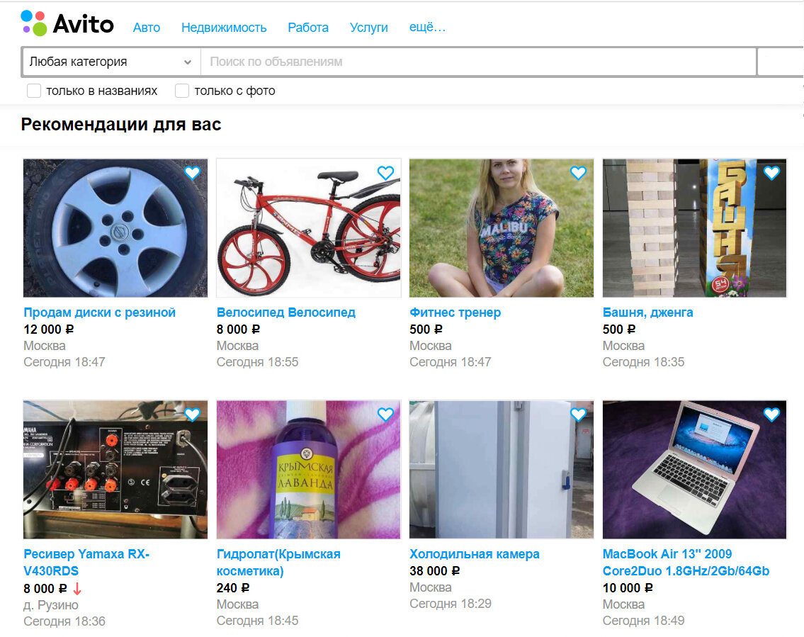 То, что вы видите на снимке ниже, - рекомендации сайта Avito для меня. Я понимаю, конечно, что гаджеты должны следить за нами (писала об этом на днях), но... как-то не очень удачно. Зачем мне диски с резиной, макбук, холодильная камера, ресивер, велосипед и гидролат?! В услугах фитнес-тренера я тоже не нуждаюсь, у меня все в порядке с фигурой. Нет, из родственников тоже никто с этого устройства в Интернете подобные вещи не искал, тем боле на Avito. Абсолютно пальцем в небо! "Юла", слава богу, ничего подобного не предлагает. Зато подавляющее большинство потенциальных покупателей на обоих сайтах почему-то не отличается воспитанием. Они заходят, задают какой-то вопрос, а потом просто исчезают! Даже простое "спасибо" редко когда увидишь. Причем еще можно было предположить, что ответ их не удовлетворил, они расстроились (ну, мало ли что) и переключились на другой товар, но странно, когда человек, например, спрашивает: "Скажите, оно новое?", а после положительного ответа больше ничего не пиш