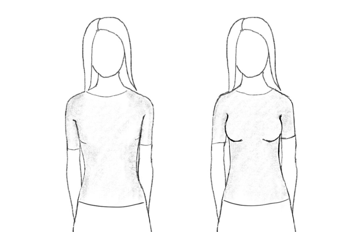 На этом изображении я объединила плоскую грудь с плоскими ягодицами, и выпуклую грудь с выпуклыми ягодицами. Обратите внимание, насколько разные силуэты фигур получились итого. И это при одинаковых обхватах и одинаковом росте.