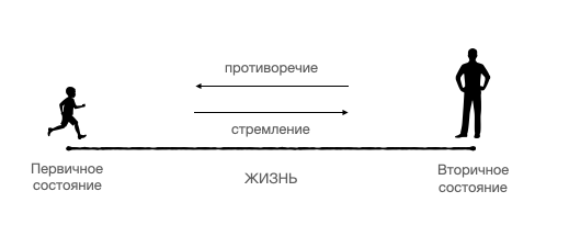 Человек и любое другое существо живет, благодаря его стремлениям перехода из одного состояния в другое. Движение вызывает сопротивление, под влиянием которого происходит формирование характеристик движения и конечного состояния.