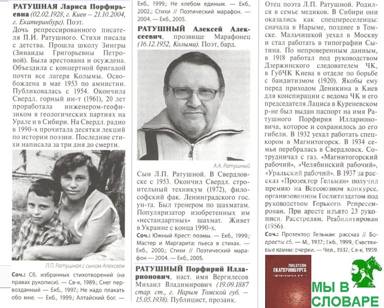 Пользуясь случаем хотел бы внести большую определённость в ряд моментов, отраженных в публикации, посвященной нашей литературной династии на странице 256 этого уникального издания.