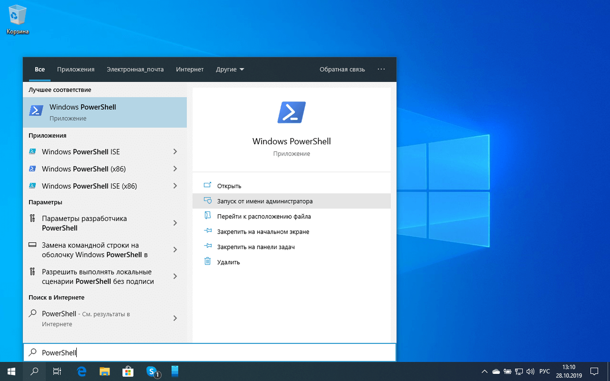 1. Открываем строку поиска windows, вводим в ней PowerShell, и открываем его от имени администратора. Вот как это должно выглядеть:
