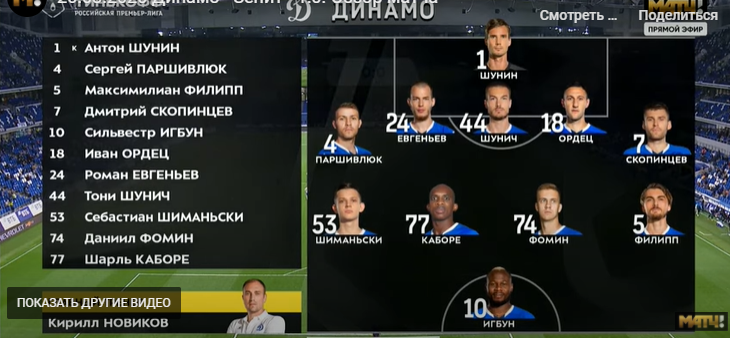 В бело-голубом дерби "Динамо" -"Зенит" ждали борьбы, но помня результаты прошлогодних матчей, казалось, у "Зенита" неплохие шансы на победу. Но оказалось не так. "Динамо" сотворили сенсацию и победили чемпиона и главного фаворита турнира дома. Состав "Динамо": "Динамо" вышли в 3 защитника, выставив более оборонительный состав. Появился Шунич. Заменили и Комличенко. Не просто так. Новиков верно подчеркнул, что Комличенко не вышел из-за тактических моментов. Дело в том, что "Динамо" собирались играть на контратаках, а к этому футболу гораздо привычнее и лучше быстрый Игбун, - Слай привык так играть в "Уфе". Состав "Зенита": Вышли все сильнейшие. Семак дал отдохнуть некоторым футболистам с "Тамбовом". "Зенит" сразу пошел в атаку, а "Динамо" село в оборону. Вот по обороне "Динамо" лучшие спецы, а в атаке у них даже с "Арсеналом" мало что получалось. Как сказал разозленный Семак после матча, трудно играть против команды, у которой 10 человек в своей штрафной. Мол, рассчитывали, что "Динамо"