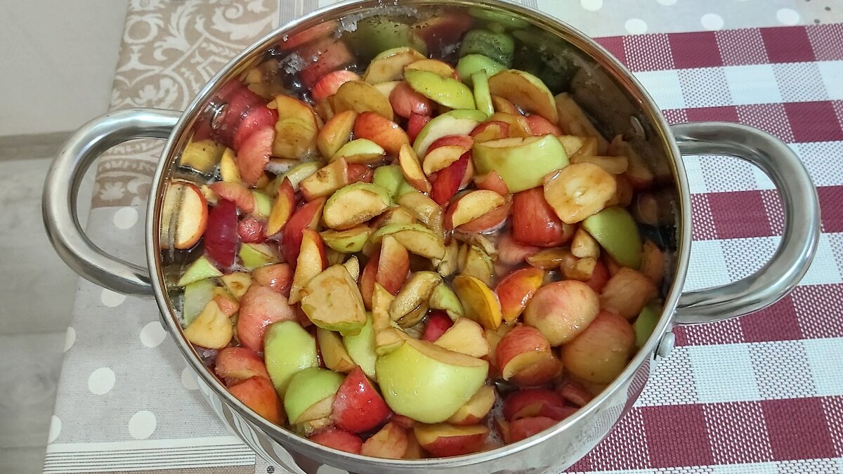 Добрый день! Все мы помним из детства вкус яблочного повидла, которое приготовила мама или бабушка, то что сейчас продают в магазине отличается и вкусом, и консистенцией. Так давайте приготовим вместе этот не сложный десерт. Для приготовления нам понадобится: Яблоки или ранетки уже без сердцевины - 3кг Сахар - 2.5 кг Лимонный сок - 1 ст.л Яблоки необходимо обрезать с 4х сторон, так получается быстрее, чем если вырезать сердцевину. Блендером измельчить яблоки до состояния пюре, добавляем лимонный сок, сложить в емкость, в которой будем варить повидло и засыпать сахаром на ночь или, хотя бы, часа на 4. После того как яблочное пюре дало сок, перемешиваем и ставим вариться на средний огонь на плиту, переодически помешивая. После того как повидло начало плюхать, варим еще 20 минут. Подготавливаем заранее простерилизованные банки и разливаем получившуюся консистенцию. Повидло получается густое без всяких добавок и консервантов. На такой объем продуктов получается 3.7л. настоящего вкусного