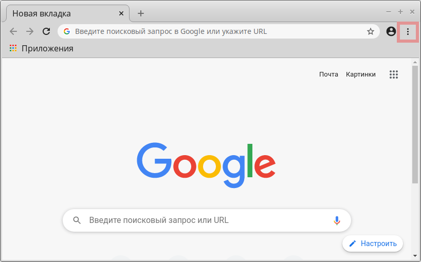 Щелкните по кнопке меню в правом верхнем углу окна браузера (выделена на скриншоте).