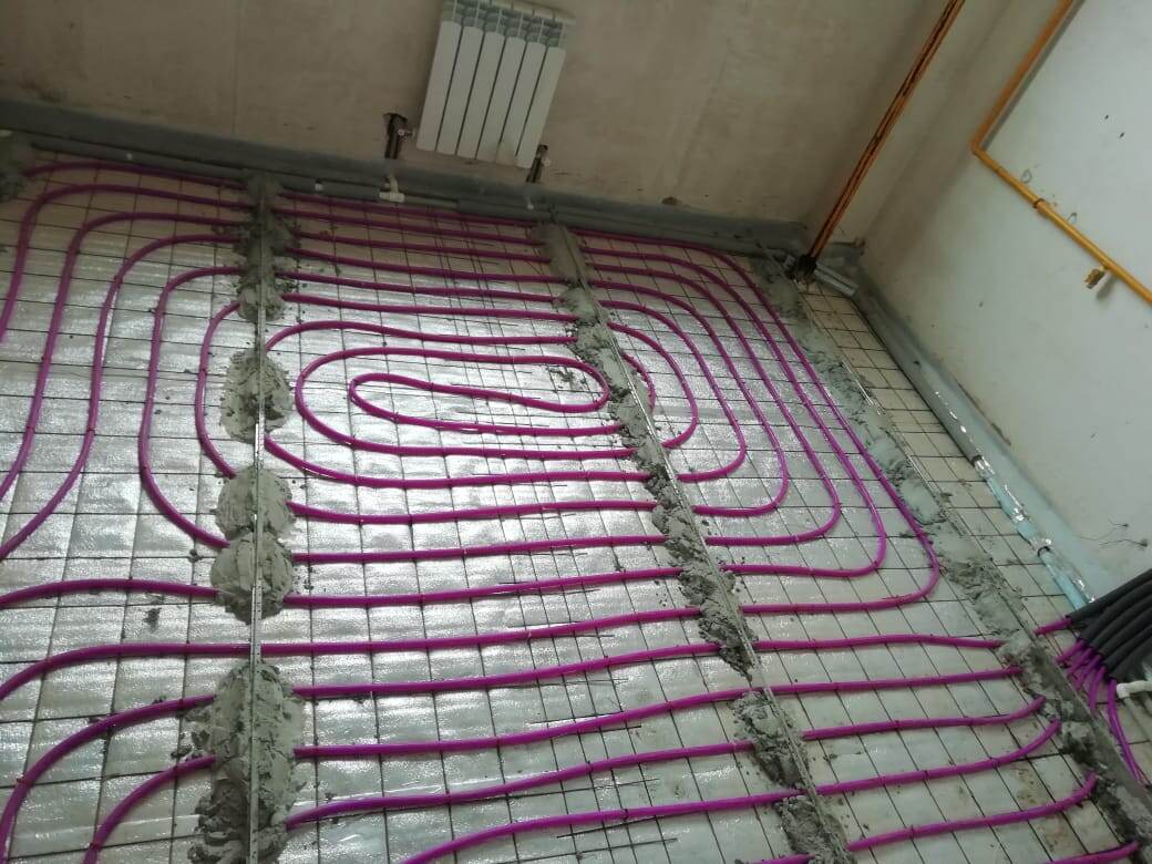Стяжку на полу решено было делать самим. Мне как всегда с ремонтом квартиры помогает мой брат. Стяжку пола в кухне прихожей и санузле решено было подогнать по высоте к стяжке пола в комнате, чтобы не было перепадов высот напольного покрытия. В интернете советовали заливать стяжку одним слоем во всех помещениях сразу, вроде как тогда будет меньше трещин. У друга позаимствовали лазерный уровень для упрощения установки маяков. Подсмотрев все в том же интернете как устанавливать маяки на пол за вечер все было сделано. Оставалось дождаться высыхания маяков и можно заливать стяжку. Заливать стяжку решено было начать с кухни, потом перейти в санузел и в конце только коридор. Договорился с братом, что он будет мешать раствор, а я буду заливать и выравнивать. Для прочности бетона была приобретена фибра, которая будет добавляться при замесе. Исходя из того объема стяжки которая была снята был куплен песок и цемент из пропорции один мешок цемента на три мешка песка, вышло 11 мешков цемента