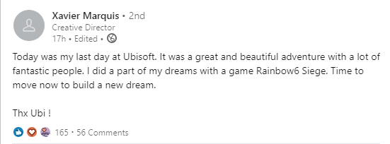 Последнее время Ubisoft не привыкать к потере значимых сотрудников. Только на этот раз, кажется, скандалы ни при чём — по крайней мере, в заявлении об уходе из компании бывший креативный директор Rainbow Six Siege Ксавье Маркиз (Xavier Marquis) о них не говорит. Вот что он написал на своей странице в бизнес-соцсети LinkedIn: Сегодня был мой последний день в Ubisoft. Это было прекрасное и замечательное приключение в компании со множеством фантастических людей. Благодаря Rainbow Six Siege я осуществил одну из своих мечт. Теперь пришла пора двигаться дальше — к новой мечте. Маркиз трудился над «Осадой» с самого начала разработки и до декабря 2019 года, когда работу над дальнейшим развитием игры передали новой команде. Всего в стенах Ubisoft девелопер провёл более 12 лет — за этот срок он, помимо всего прочего, успел выступить арт-директором Ghost Recon: Future Soldier. Напомним, что в Siege скоро стартует сезон под названием Operation Shadow Legacy, куда в том числе входит новый опера