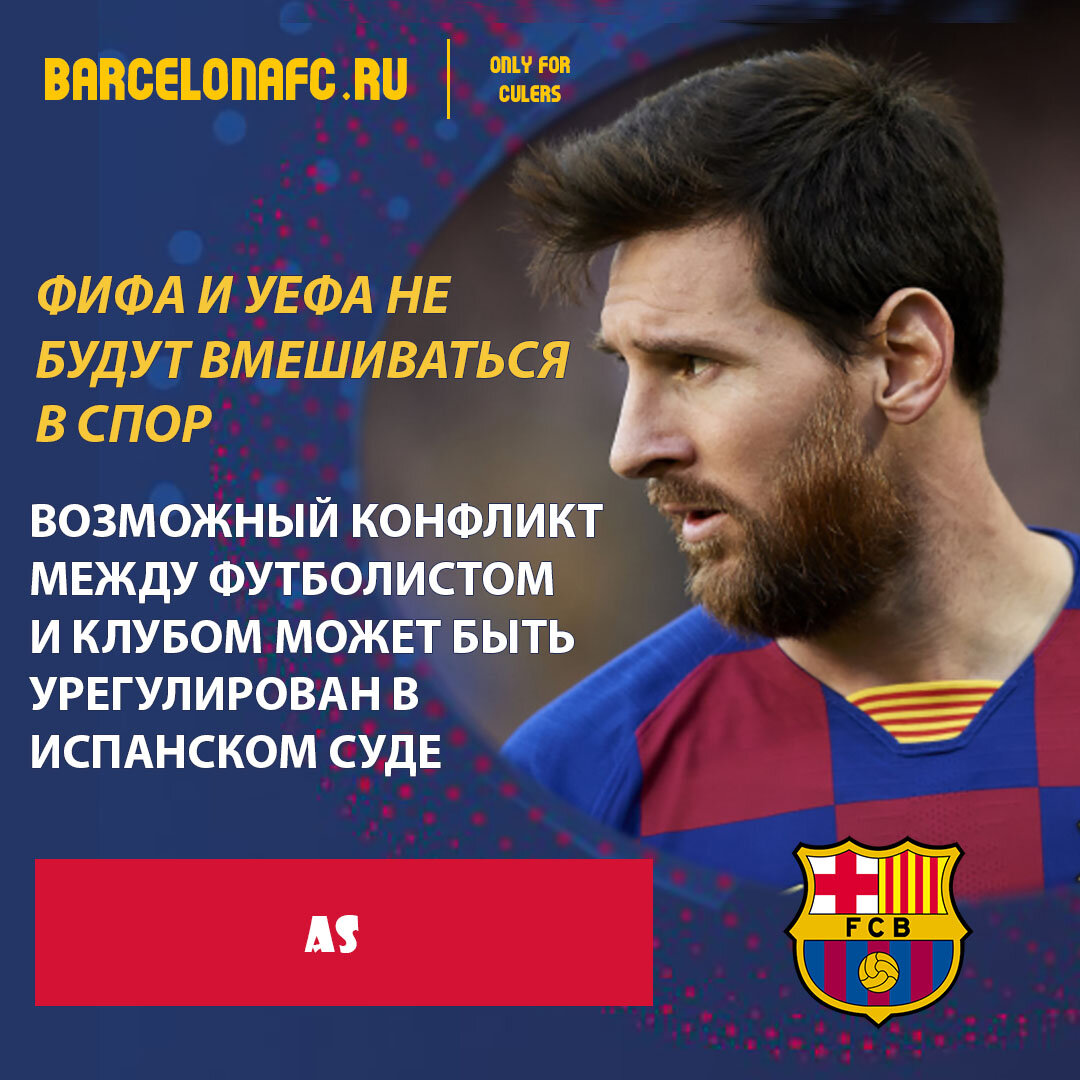Возможный конфликт между футболистом и клубом может быть урегулирован в испанском суде Лео Месси хочет покинуть Барселону этим летом. Игрок считает, что может сделать это бесплатно, потому что в его контракте есть такой пункт. Однако, по информации клуба, срок действия этого пункта истек 10 июня. У обоих сторон разные взгляды на этот счет, что может повлечь судебное разбирательство. По сообщениям СМИ, УЕФА и ФИФА не вмешиваются в этот вопрос. Поэтому возможный конфликт между футболистом и клубом может быть урегулирован в испанском суде. Европейские органы знают об этом, поэтому не вмешиваются, что для них является облегчением, поскольку система оговорок о преждевременном уходе футболиста в Испании имеет иной характер. Стороны должны выполнять обязательств по всему контракту, но вместо этого часто приходят к финансовому соглашению. AS приводит пример ситуации с Неймаром, которому пришлось выплатить 222 миллиона евро, чтобы иметь возможность расторгнуть контракт и заключить договор с ПСЖ